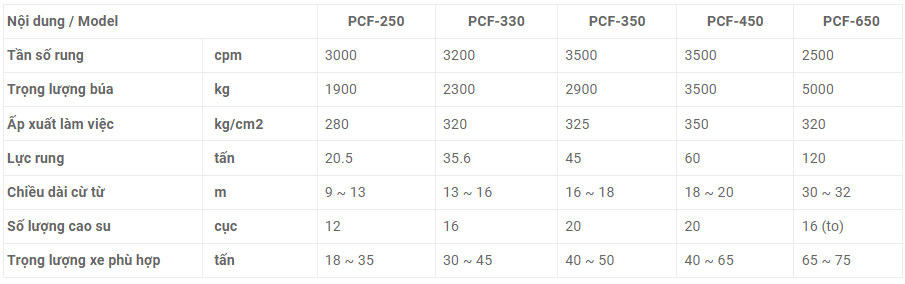 Hiện nay, trên thị trường có rất nhiều loại búa rung khác nhau được sử dụng để đóng cọc cừ larsen. Tuy nhiên, loại búa rung phổ biến nhất và hiệu quả nhất là búa rung thủy lực của hãng Feng Fu Đài Loan. Với thiết kế đặc biệt, hàm kẹp của búa này được tối ưu hóa để đáp ứng yêu cầu đóng cọc cừ larsen.