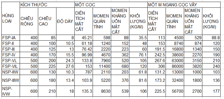 Trọng lượng cho 1m cừ phải được kiểm định từ thông số kĩ thuật của nhà máy hoặc cân nặng của cừ thực tế.
